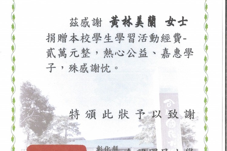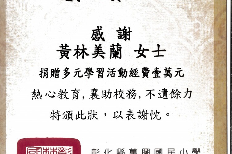 社會公益-感謝狀-彰化縣埤頭鄉合興民小學