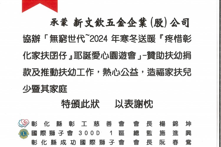 社會公益-感謝狀-彰化縣萬興國民小學