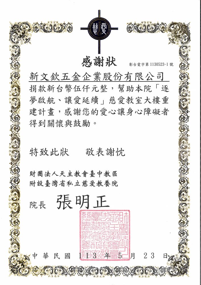 > 社會公益與關懷 > 社會公益-感謝狀-慈愛教養院