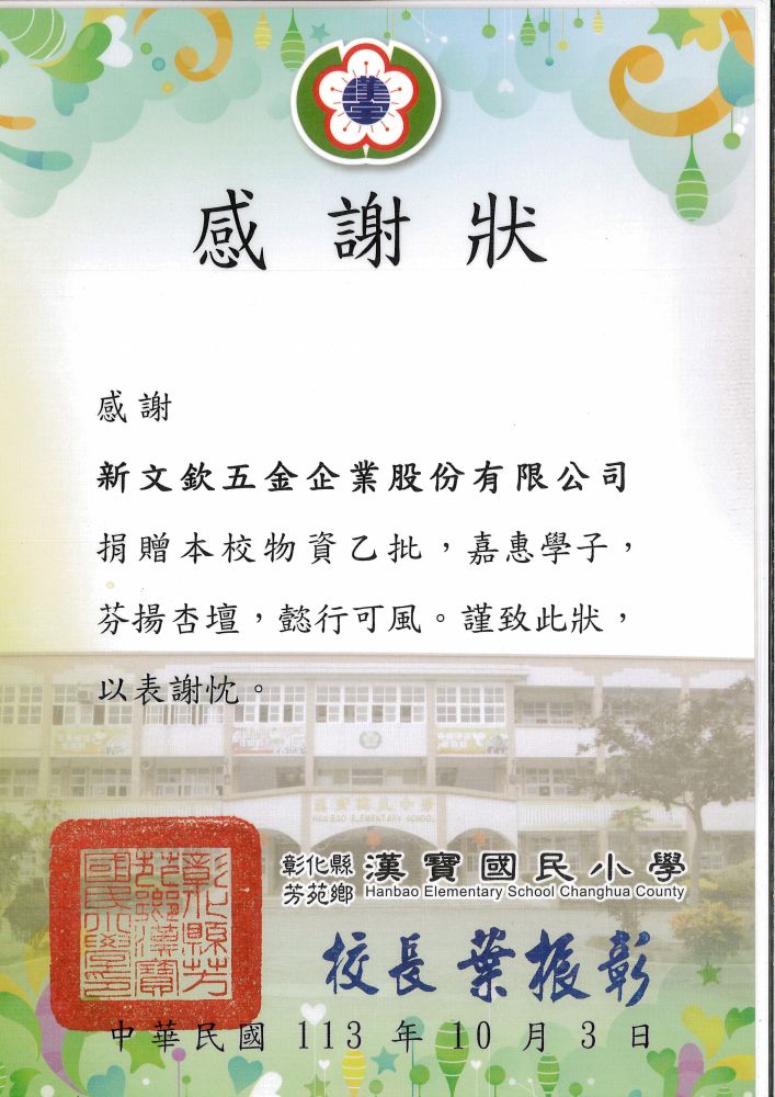 > 社會公益與關懷 > 社會公益-感謝狀-合照-彰化縣芳苑鄉漢寶國民小學